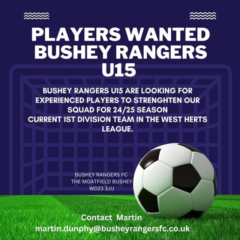 Bushey Rangers U15 are on the look out for experienced players to join their team.