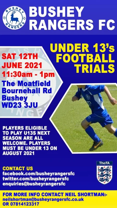 Our U12's had a successful season winning their league at 9 a side and are now holding open trials to add to the team ready for 11 a side next season! Any interest please contact Neil Shortman. See poster for details