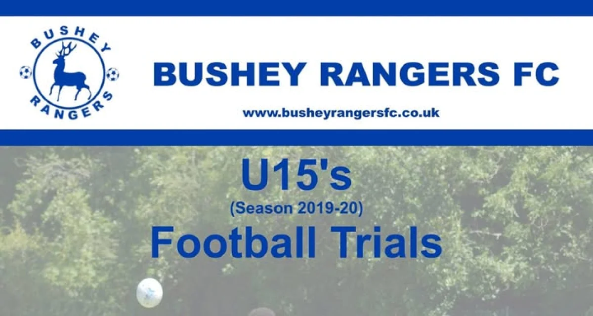 Next Seasons U15s Football Trials at Bushey Rangers FC tonight from 18:00 - 19:30.