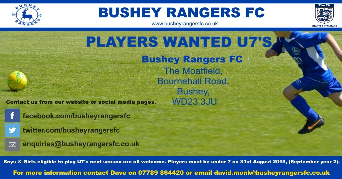 Players Wanted U7's - Please see flyer for details. #PlayersWanted #U7s #Football #Bushey